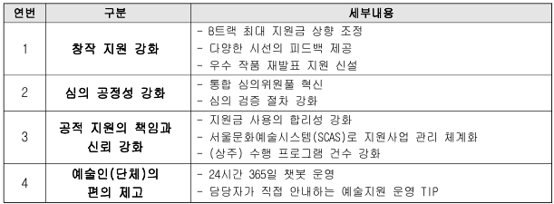 ※ 자세한 개선 내용은 첨부파일 및 서울문화재단 유튜브 <스팍TV>를 통해 확인 가능합니다.
