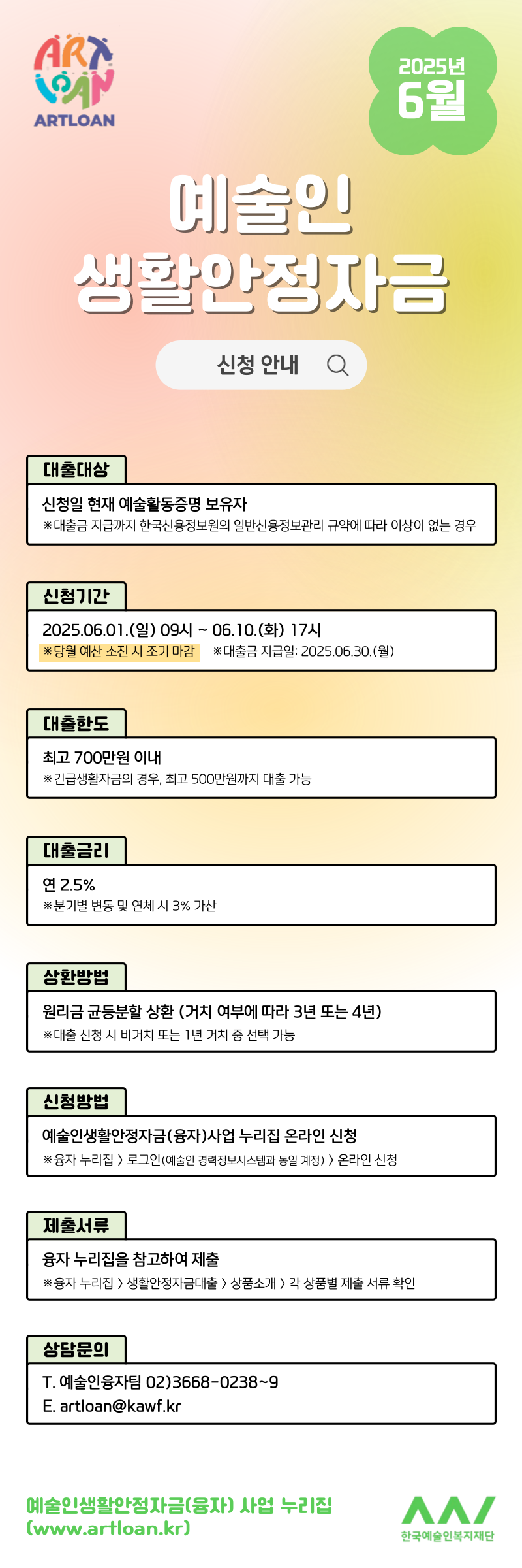 2025년 6월 예술인생활안정자금(융자)사업 신청 안내